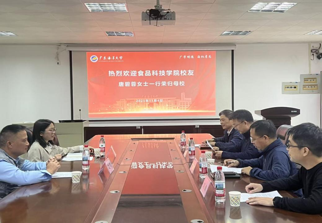 11月4日上午,食品科技学院优秀校友唐碧蓉女士一行荣归母校。校友座谈会暨开云kaiyun登录入口“九秩未来奖学金”实施细则洽谈会在望海楼A105会议室举行。学院党委书记伍彬、院长刘书成、党委副书记罗智勇及辅导员代表参加了会议。会议由罗智勇主持。