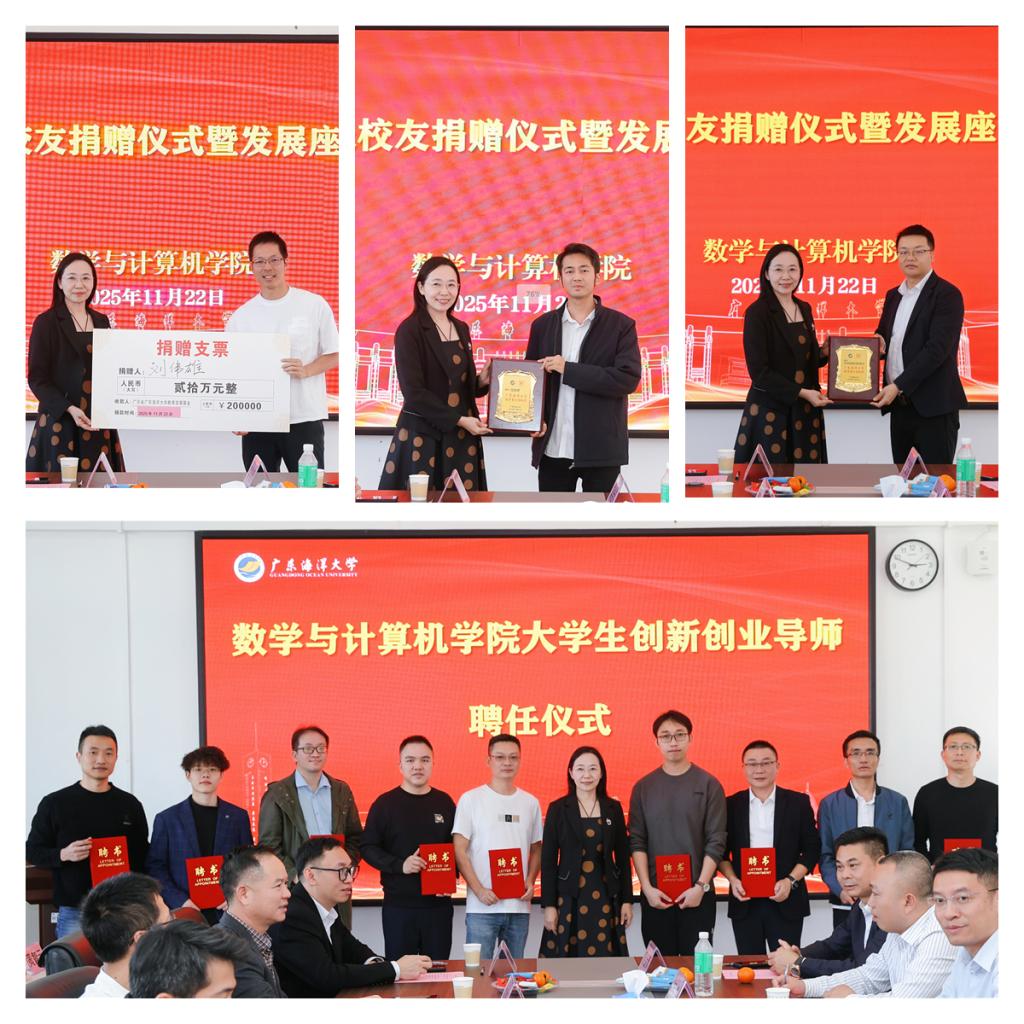 下午,学院企业及校友捐赠仪式暨发展座谈会在明德楼405会议室举行。学院党委书记龙俊和院长彭小红介绍了学院近年在学科建设、师资队伍建设等方面的发展与未来规划。捐赠仪式上,学院为校友伍世奇及中软国际颁发捐赠荣誉牌匾;校友刘伟雄当场捐赠20万元,获现场热烈掌声。座谈会上,校友围绕人才培养、校企合作等议题建言献策。学院聘任了十几位优秀校友为“大学生创新创业导师”,受聘校友表示将助力学弟学妹成长。