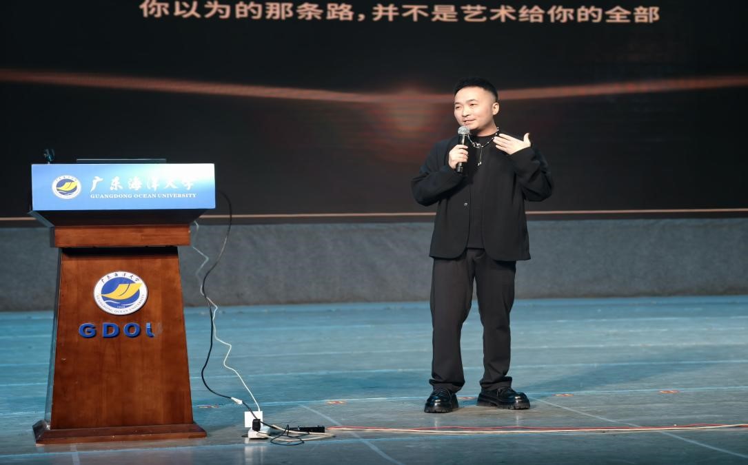 视觉传达设计专业往届毕业生、珠海奥库集团INJOYLIFE品牌创始人黄宇宁带来《艺术,让人生有更多可能》的主题分享。他围绕“如何从市场需求中提炼设计方向”“创业初期的资金周转技巧”等话题分享实操心得,并现场邀请学子赴珠海奥库集团参观交流,近距离感受品牌全产业链运营流程。