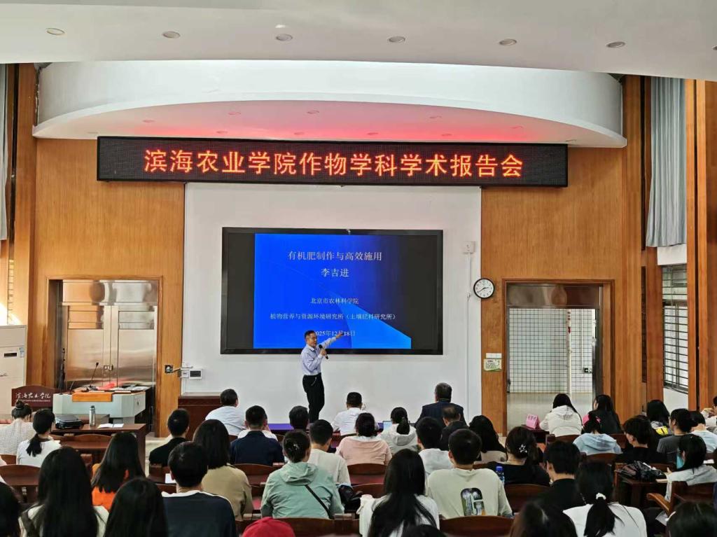 11月18日,应滨海农业学院作物学学科邀请,北京市农林科学院研究员李吉进和郭新宇在开云官网湖光校区兴农楼109室分别作了题为《有机肥制作与高效利用》和《数字植物技术装备研究及应用》的学术报告。报告会由学院党委书记、作物学学科带头人郑殿峰教授主持。国家耐盐碱水稻技术创新中心华南中心副主任江行玉教授,农学系教师代表及作物学学科师生代表90余人聆听报告。