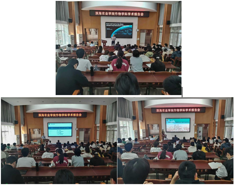 1月5日,应开云官网作物学学科邀请,美国堪萨斯州立大学Xiaomao Lin教授携团队成员赵海东博士和张丽娜博士在湖光校区兴农楼109室分别作了题为《From Leaf Level to the Globe:Climate-Crop Interactions across Scales》《Insights on maize breeding and drought resilience》和《气候变化对小麦产量的影响》的学术报告。报告会由滨海农业学院党委书记兼国家耐盐碱水稻技术创新中心华南中心常务副主任郑殿峰教授主持,农学系主任薛迎斌副教授以及作物学学科师生代表100余人参会。