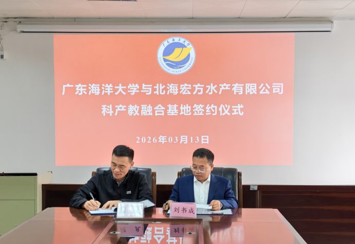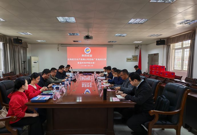 3月13日上午,北海宏方水产有限公司董事长仇利飞一行到食品科技学院进行交流访问。双方在A105会议室举行了交流座谈会,并签订了科产教融合基地与实习就业基地协议。会议由院长刘书成教授主持。