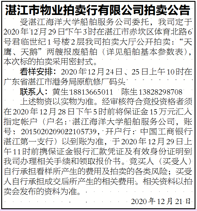 此公告刊登于湛江日报2020年12月21日A07版:http://paper.gdzjdaily.com.cn/html/2020-12/21/node_10636.htm