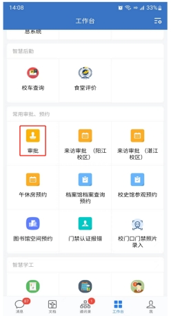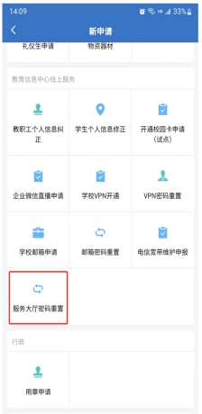 方法二:手机登录学校企业微信,在企业微信工作台“审批”应用里,提交“服务大厅密码重置申请”并等待人工审批。
