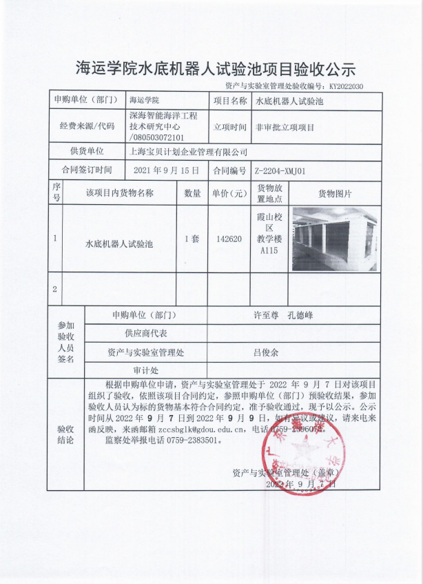 海运学院水底机器人试验池项目验收公示