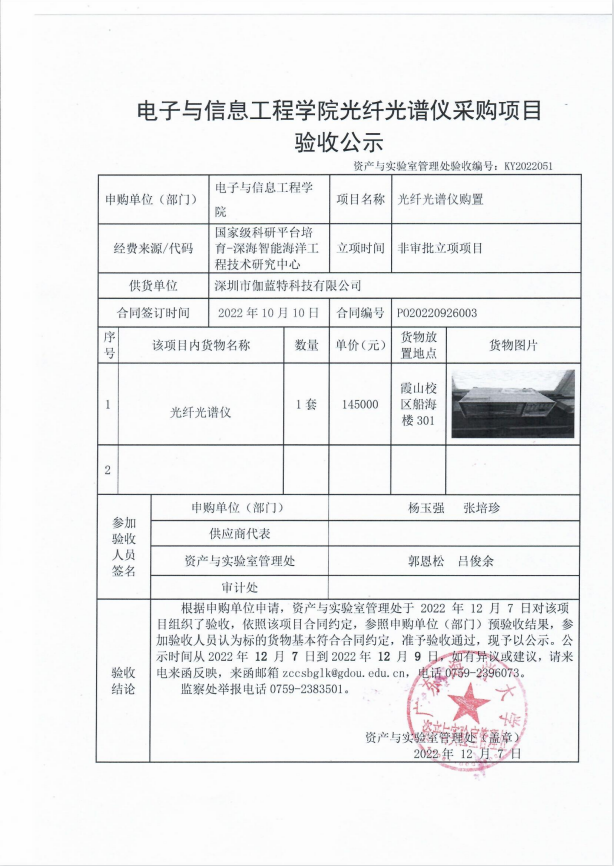 电子与信息工程学院光纤光谱仪采购项目验收公示