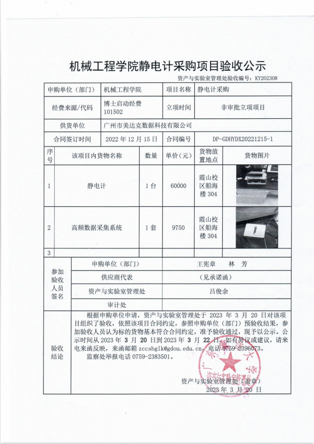 机械工程学院静电计采购项目验收公示