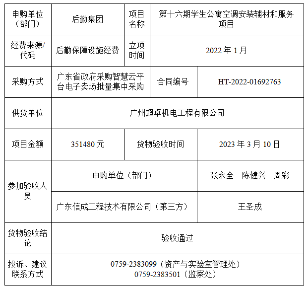 第十六期学生公寓空调安装辅材和服务项目验收公示