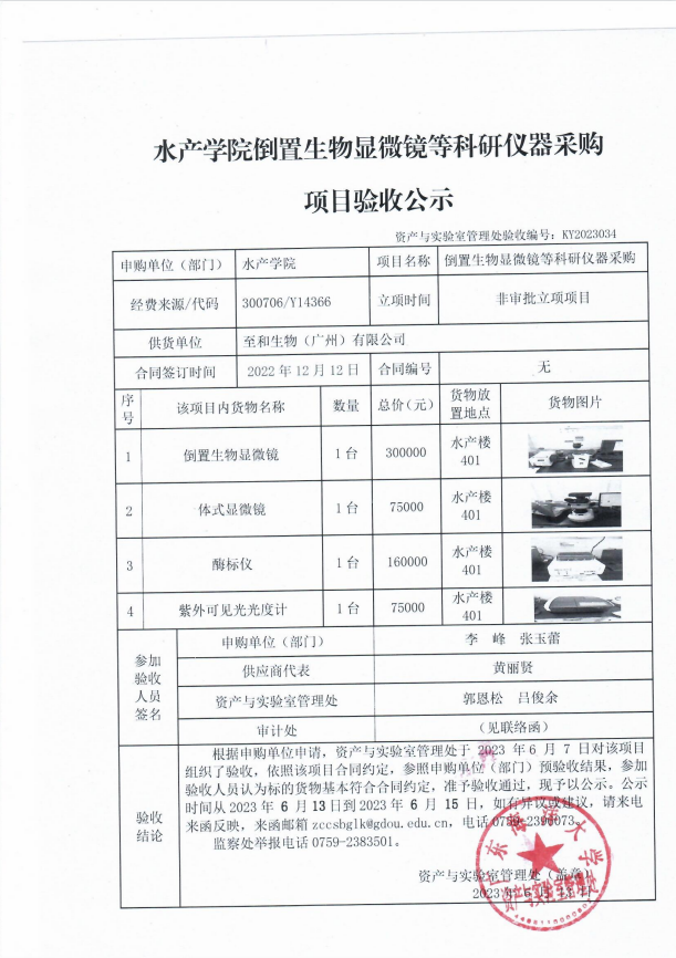 水产学院倒置生物显微镜等科研仪器采购项目验收公示