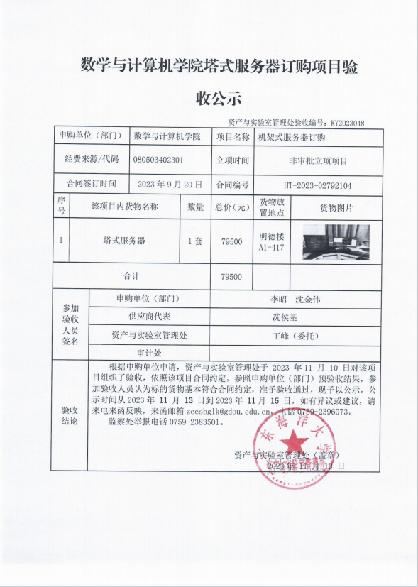 数学与计算机学院塔式服务器订购项目验收公示