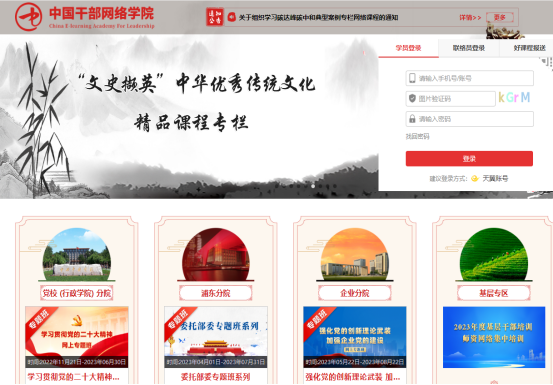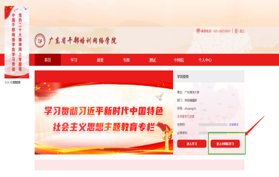 第二步:点击进入中网院学习,打开“中国干部网络学院”页面