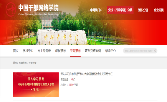 第三步:点击党校(行政学院)分院,进入“党校(行政学院)分院”页面,下拉到最新专题。