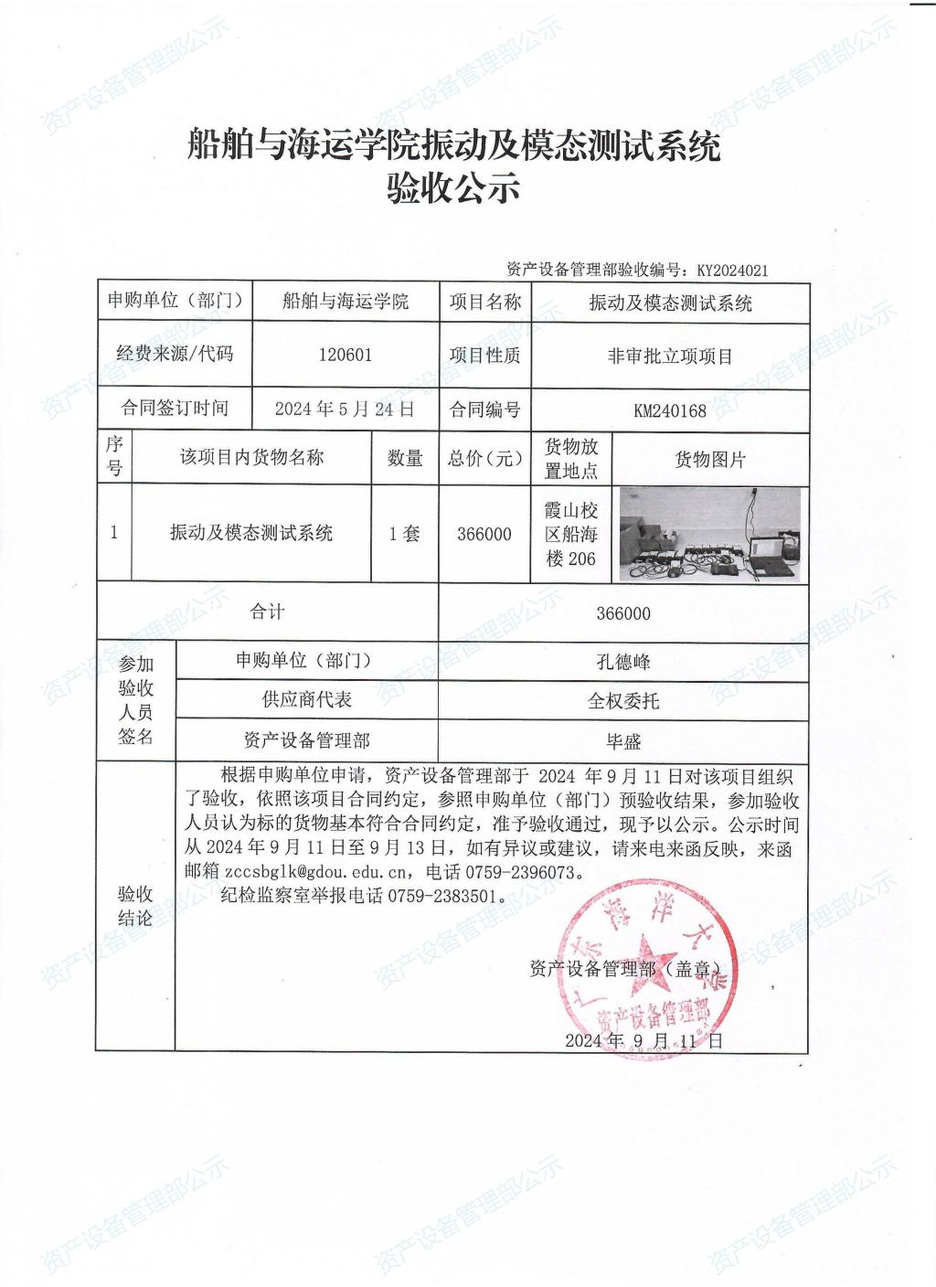 船舶与海运学院振动及模态测试系统验收公示