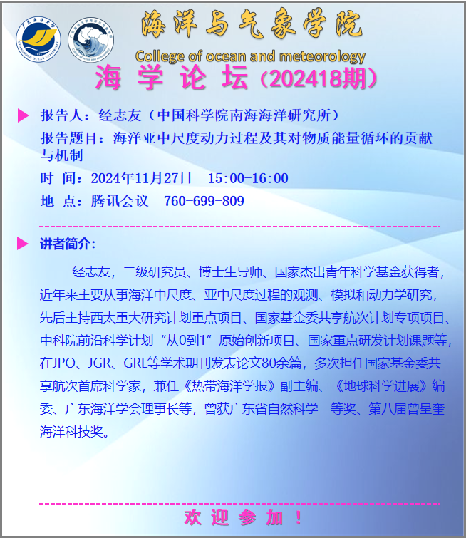 海洋与气象学院“海学论坛”(202418期)