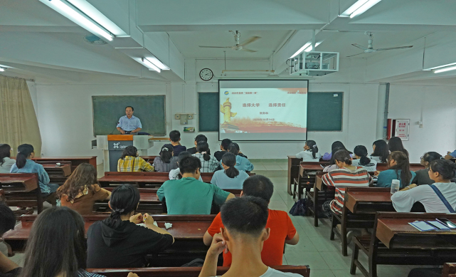 10月14日下午,文学与新闻传播学院党委书记阮彭林和院长孙长军,在湖光校区教学主楼703室为学院2020级全体班委上“思政第一课”。