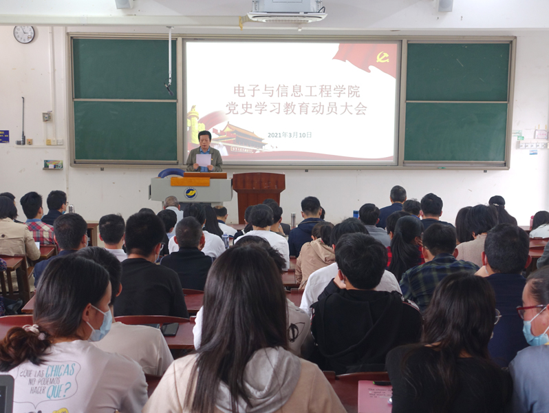 3月10日下午,电子与信息工程学院党委在湖光校区钟海楼04025召开了学院党史学习教育动员大会,学院副科级以上干部、全体师生党员120余人参加。会议由学院党委副书记聂杰主持。