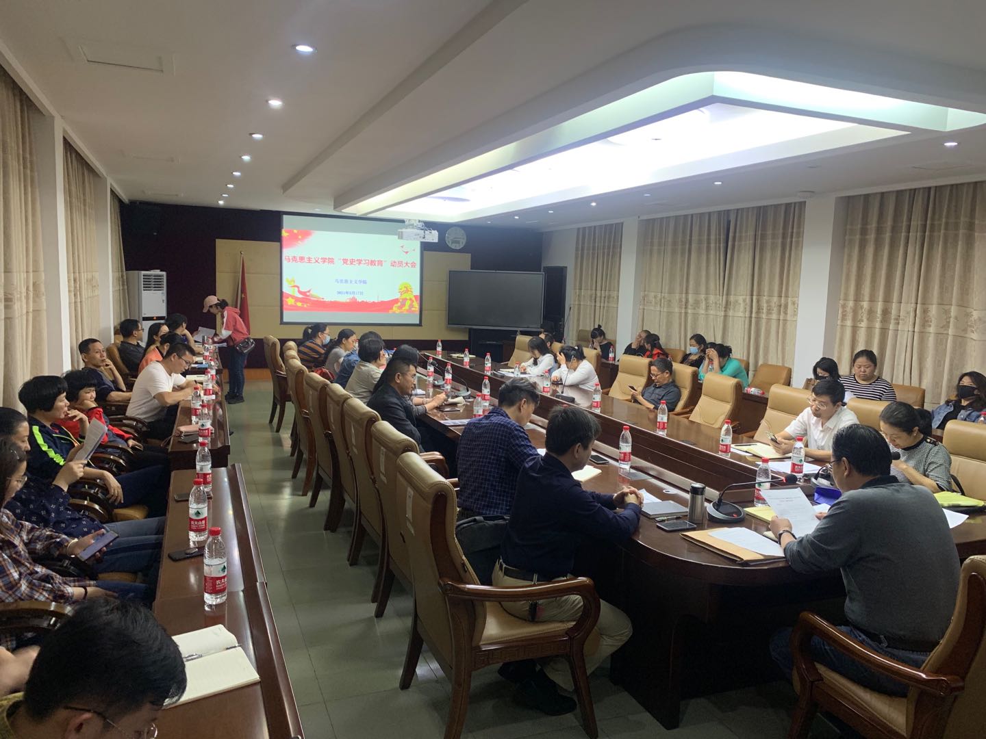 3月17日,马克思主义学院党总支召开全院党史学习教育动员大会,深入学习贯彻习近平总书记在党史学习教育动员大会上的重要讲话精神,认真贯彻落实学校党委关于在全校开展党史学习教育的通知精神,对学院扎实开展党史学习教育进行动员部署。学院领导及全体教职工46人参会,会议由学院党总支书记宋玉忠主持。