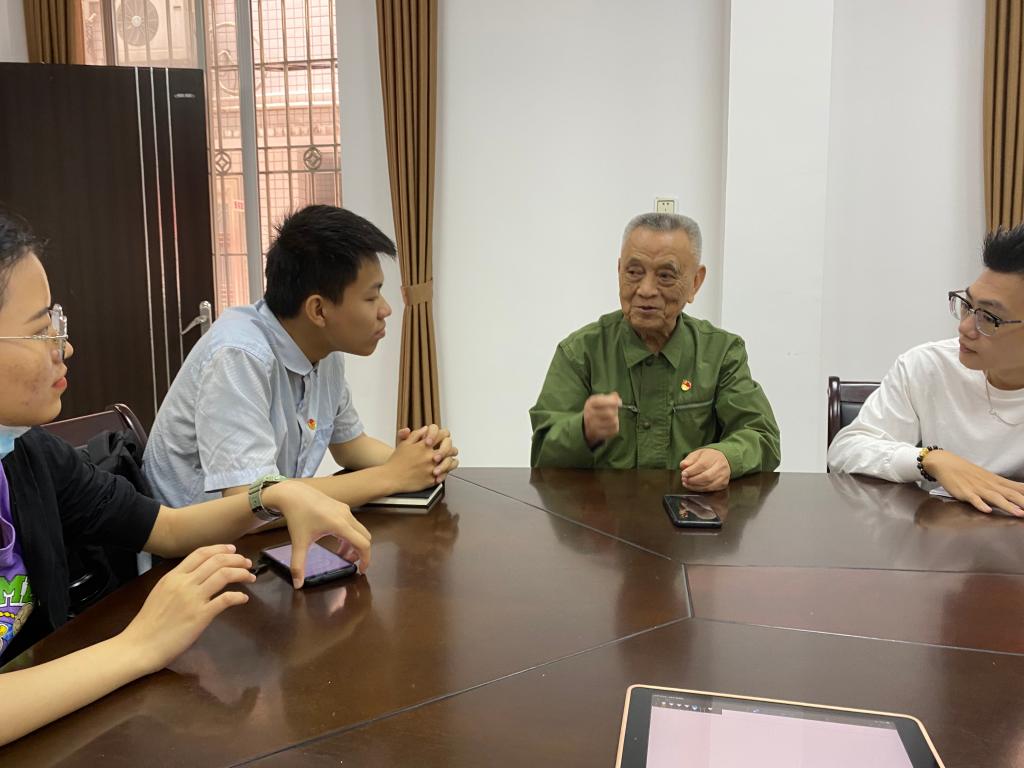 20日,学生代表分为三个小组,走街串巷、进村入户寻访老党员、老战士、老模范。在海滨公园,同学们采访了93岁高龄的罗国华老同志,罗老先生是跟随着党从抗日战争和解放战争胜利走过来的老战士,1941年便加入了中国共产党,从此将自己的一生都奉献了给党,退休后坚持给广大青年学子讲述党史和革命史。在此次采访中,罗老先生给同学们上了一堂生动详实的党课,他勉励同学们要继承和发扬党领导革命的优良传统与作风,好好学习文化知识,认真深入学习党史,争取早日成为国家的栋梁,即使不能成为国家的栋梁,也要尽力为国家做贡献。在赤坎军休所活动中心,同学们如约见到了田欣民老党员。田老先生原是空军二师副参谋长,飞行时长达29年,1991年退伍,曾被中组部评为全国离退休干部先进个人。在访谈中,田老先生回顾了自己作为一名光荣的人民空军的飞行生涯,教育引导同学们时刻要以一颗赤子之心、忠于祖国、忠于党,践行党为人民服务的初心和使命,有一份心出一份力,遇事要沉着冷静,善于依据平时的经验和学到的知识积极应对。在黎耀老党员的家里,同学们受到了热情的接待。黎老先生家乡是革命老区,从小就受中国共产党领导革命的影响,青少年时期便跟随当地的地下党组织参加革命,刚满18周年就入党了,至今已有50年党龄。在访谈中,黎老先生讲述了其从小就参加革命的故事、入党前后的思想变化,以及工作期间和退休后的难忘经历,希望同学们要始终坚定信念,爱国爱党,学好本领,为社会、为人民贡献一份力量。