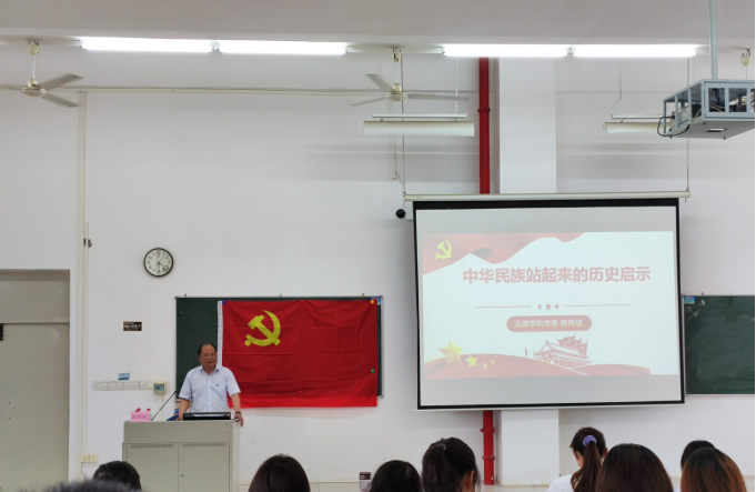 陈伟斌以“中华民族站起来的历史启示”为主题,通过丰富详实的史料回顾了中国共产党成立以来的历史背景,重温了中国共产党自1921年成立至今带领中国人民所经历的百年艰苦卓绝的奋斗历程,总结了中华民族站起来、富起来、强起来的历史启示:一是没有共产党就没有新中国;二是必须坚持以人民为中心的发展思想;三是坚持马克思主义与中国具体实际相结合;四是勇于面对任何困境、战胜任何困难;五是树立核心意识,维护党中央的权威;六是善于总结经验、纠正错误,在实践中不断前进。他勉励同学们要加倍珍惜今天来之不易的幸福生活,从党史中汲取智慧和精神力量,坚定理想信念。
