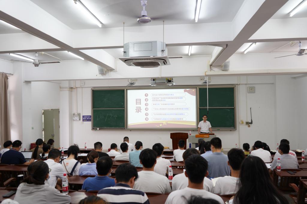 宣讲会上,杜军从党代会召开的重大意义、过去五年广东改革开放取得的历史性成就和积累的宝贵经验、未来五年广东发展的目标要求、广东深入贯彻新时代党的建设总要求的重大举措、广东与时俱进全面深化改革的关键要义和广东落实好九项重点工作任务的部署要求等6个方面,对省第十三次党代会精神进行了详细解读。