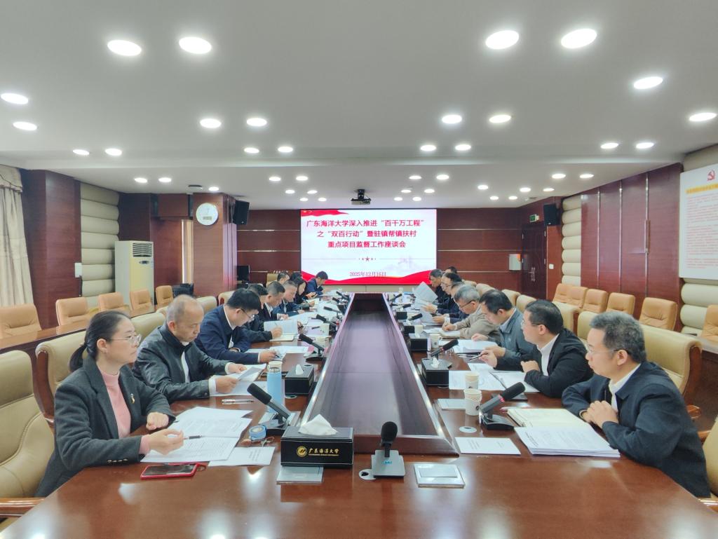 科学技术部副部长刘劲科介绍了学校“双百行动”工作推进总体情况,从多个维度总结了阶段性成果,并分析了当前项目推进中的重点与难点。会议还重点听取了学校驻雷州市服务队队长伍彬、驻徐闻县服务队队长何国明、驻麻章区服务队队长赵裕彬、驻遂溪县河头镇帮扶工作队队长梁卓其等团队的工作情况汇报。