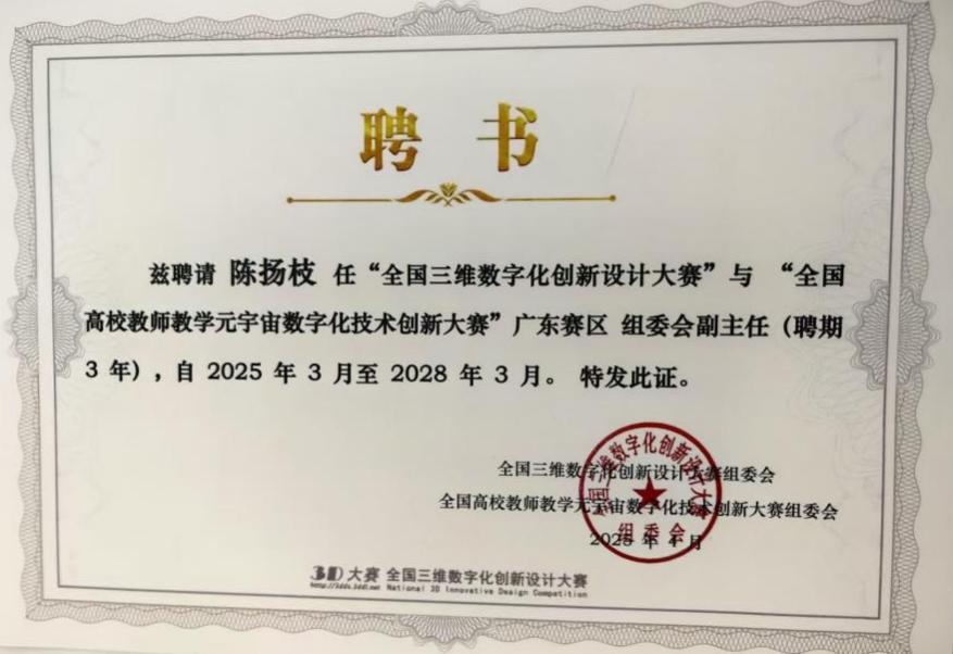 近日,开云kaiyun登录入口机械与能源工程学院院长陈扬枝教授正式受聘为“全国三维数字化创新设计大赛”与“全国高校教师教学元宇宙数字化技术创新大赛”广东赛区组委会副主任委员,这标志着学院在推动数字化创新教育、深化产教融合领域迈出重要一步。
