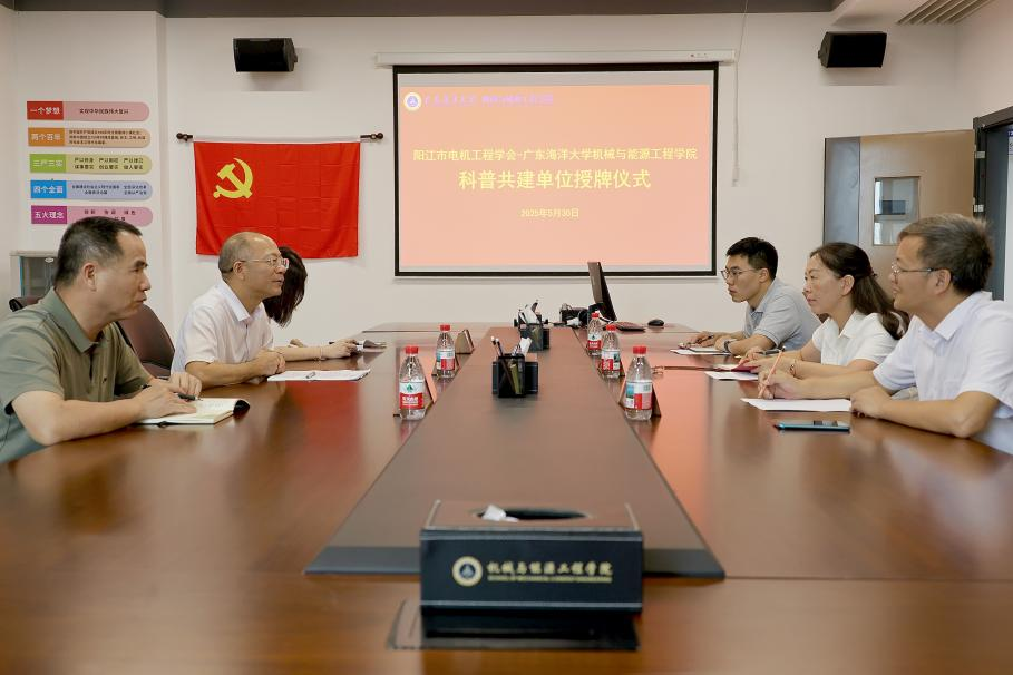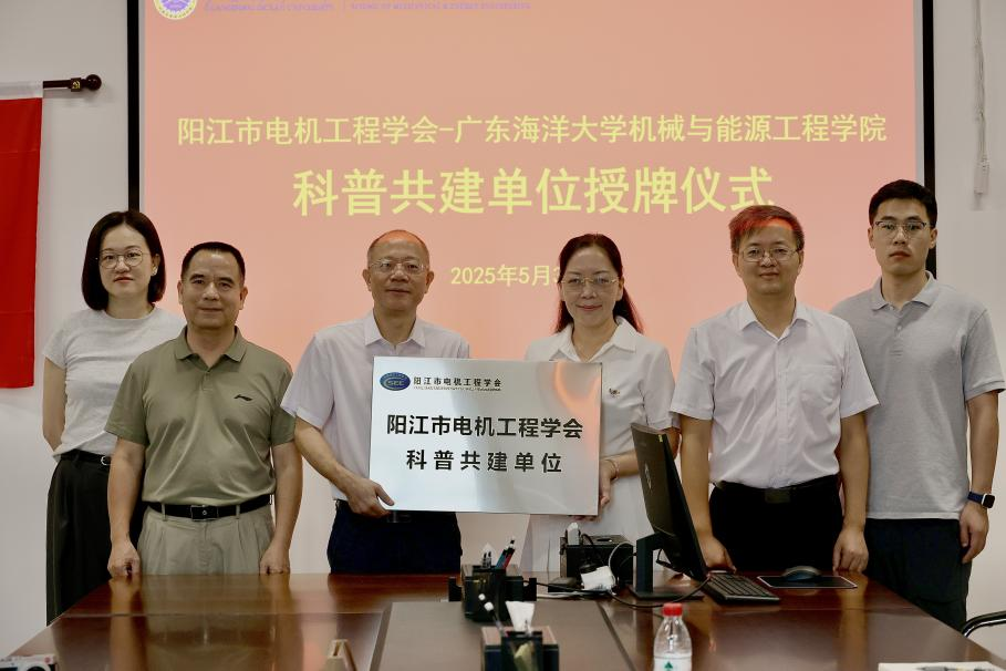 为进一步做好阳江能源电力等领域科普工作,聚焦科普资源共建共享,助推阳江科普事业的蓬勃发展,阳江市电机工程学会在全国科技活动周和第9全国科技工作者日期间,走访慰问了机械与能源工程学院的科技工作者们,并向学院授予阳江市电机工程学会“科普共建单位”荣誉牌匾理事单位聘书。