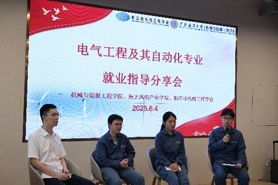 讲座结束后,来自阳江供电局的党培林、王新月和赵滋萌三位职工就电气专业求职疑问进行现场经验交流与分享,在交流中深化同学们对建立专业能力是核心竞争力的认知,树立沉下心夯实理论、脚踏实地成长的职业目标。