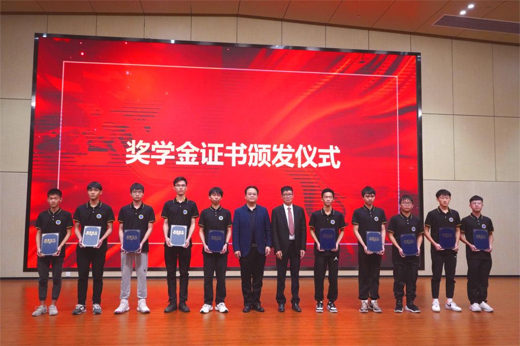 校区领导和黄计高董事长为获奖学子颁奖