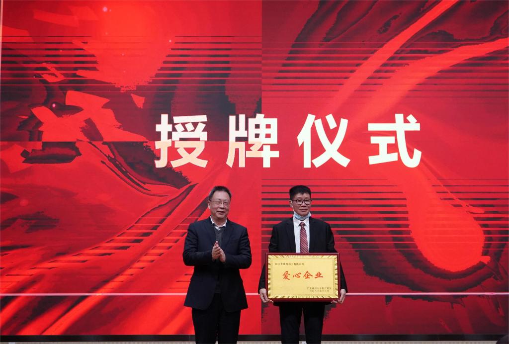 彭权群为黄计高董事长颁发“爱心企业”牌匾