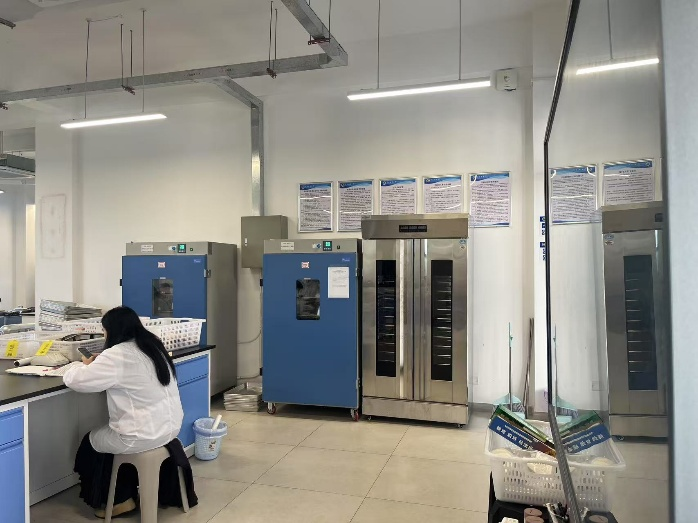 食品工艺学实验室共有2间,总面积约200平方米,承担食品科学与工程学院三个专业(食品科学与工程、食品质量与安全、食品营养与健康)共八个班级的《食品工艺学实验》、《保健食品与功能评价》及《新产品开发》的实验教学任务,主要有烘箱、发酵箱、旋转蒸发仪等仪器。实验课程有: 《食品工艺学实验》的麻薯面包的制作、咸蛋的制作、牛肉丸的制作、肉松的加工、冰淇淋的制作及布丁的制作、软糖的制作、果蔬产品工艺设计及产品开发、《保健食品与功能评价》的中药材提取工艺正交实验设计与提取实验及新产品开发的开放性实验;此外,该实验室结合《劳动教育》课程及本科生创新性实验活动联合代表性食品企业开展多项创新性大赛,包括“美味源创新厨艺大赛”、同德“缤纷果饮校园杯”及海珠子“蚝情美味厨艺大赛”等。