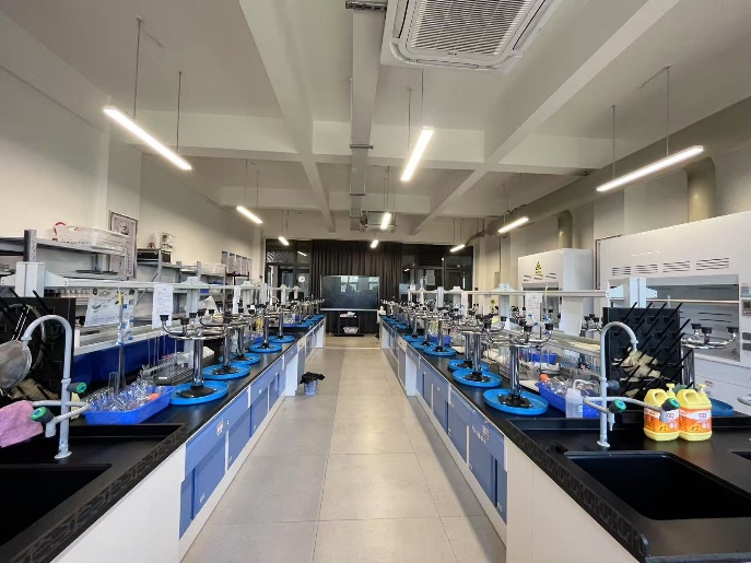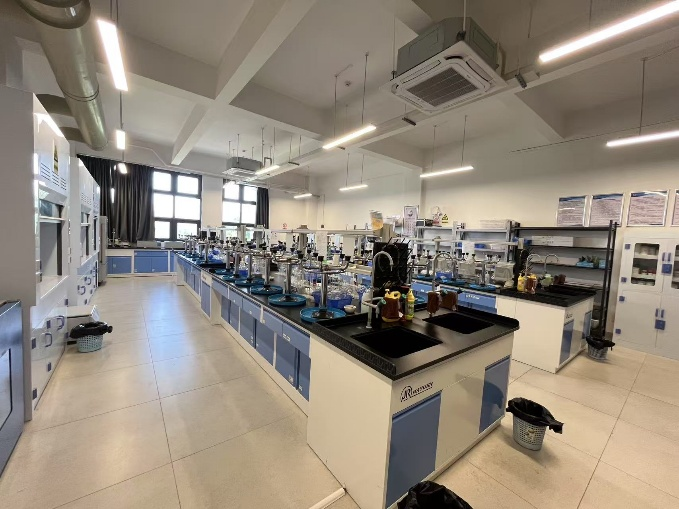 食品营养与化学实验室总面积约96平方米,承担食品科学与工程学院三个专业(食品科学与工程、食品质量与安全、食品营养与健康)共八个班级的《食品营养与化学实验》、《保健食品与功能评价》的实验教学任务,主要仪器有低速冷冻离心机、烘箱、分光光度计、酶标仪等仪器。实验课程有:《食品营养与化学实验》的食品中水分活度的测定、美拉德反应初始阶段的测定、方便食品中淀粉α-化程度测定、脂肪氧化及稳定性的测定、蛋白质的功能性质、绿色果蔬中叶绿素的提取与含量测定、植物提取物中总黄酮含量及抗氧化活性的测定、鱼肉蛋白质的酶解及酶解产物中短肽含量的测定以及《保健食品与功能评价》的保健食品中总黄酮和总多糖含量的测定实验及使用斑马鱼模型验证保健食品的降血脂功效实验。