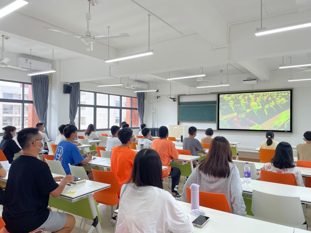 今天上午我院班主任辅导员陪同新生在教学楼课室集中学习,各党员老师汇集学院会议室观看研讨,因公外出的老师采取分散自主形式观影,确保人人受教育,一个不落下。相关学习发人深省催人奋进,进一步强化我们党员干部的不忘初心砥砺前行,有力促进我院广大师生在前进道路上勇于开拓创新,不断奋发进取!