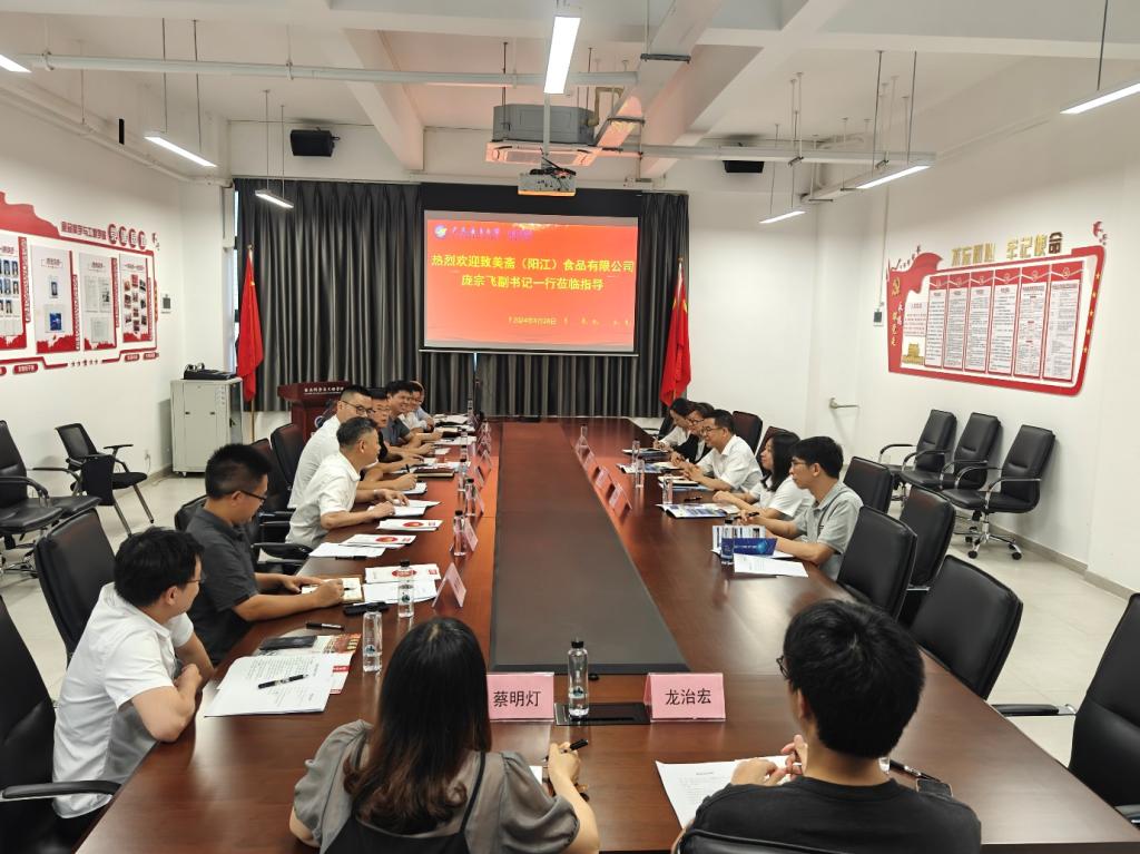 2024年4月28日下午,致美斋酱园党总支副书记、董事庞宗飞、人力资源部经理黄志萍一行5人到开云kaiyun登录入口阳江研究院调研,并在海科楼404会议室进行了座谈交流。食品科学与工程学院书记、阳江研究院副院长夏杏洲、教学科研部负责人白浚宇、机械与能源工程学院院长陈扬枝、阳江研究院副院长罗东辉及学生事务部、教学科研部有关部门同志陪同调研并出席座谈会。