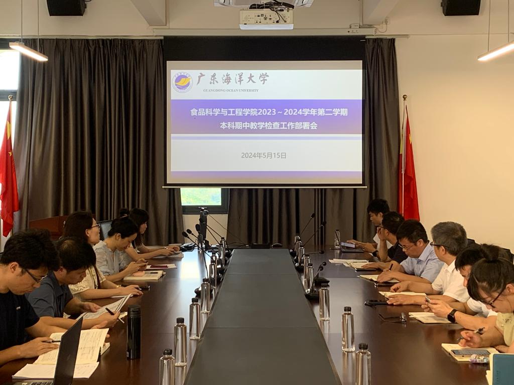 为深入贯彻落实阳江校区《关于开展2023~2024学年第二学期本科期中教学检查的通知》的文件精神,2024年5月15日,食品科学与工程学院在海科楼404会议室召开了2023~2024学年第二学期本科期中教学检查工作部署会,院长朱思明主持,全体教职工参会。