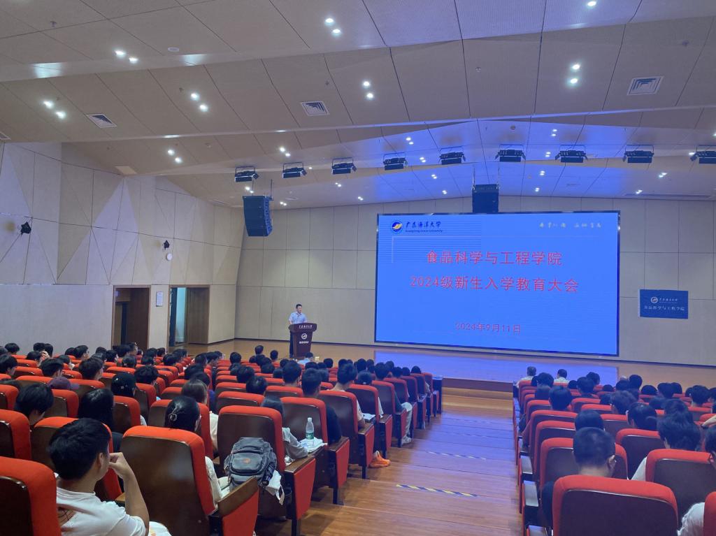 11日晚上七点半,学院举行2024级新生入学教育,学院领导、专业教师、辅导员、班主任及全体新生参加此次会议。大会由夏杏洲书记主持,朱思明院长向新生们发表——认识大学,认识食品,立志成才,报效祖国的主题学习讲话,从国家到个人的角度详细为新生介绍大学和食品专业,并对新生们寄予立志成才,报效祖国的厚望;教师代表罗东辉副教授结合自身生活和工作经历,对新生在大学生活作出了深切的勉励以及殷切的期望;优秀老生代表易佳雯和退役复学任培桦与同学们谈论大学以及部队中的所思、所想、所感;杨新河教授全面且详细地为新生讲解在后续学习中面临的学籍问题,帮助新生了解学院课程管理制度、考试制度以及学籍管理政策;郭颖萍老师就学费疑惑、反诈知识等多方面和个人学习、生活、心理健康多维度地向新生进行讲解,并为新生们提供了详尽的信息帮助他们更好地规划学习生涯。新生们认真听讲,现场氛围活跃。