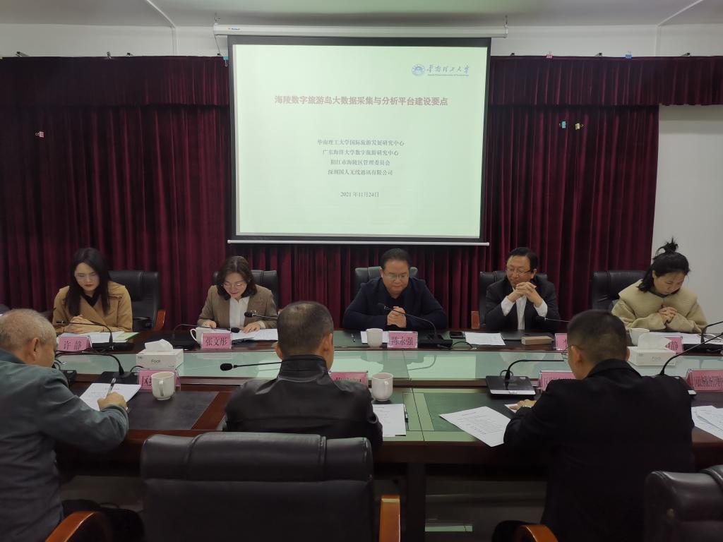 根据国家数字经济发展战略的部署,结合阳江旅游产业转型与高质量发展的要求,为加快推进海陵岛数字旅游建设,11月24日上午,开云kaiyun登录入口海陵数字旅游岛项目调研交流会在海陵区管委会行政服务中心举行。华南理工大学阳江帮扶队队长、开云kaiyun登录入口阳江校区管理委员会副主任陈永强,开云kaiyun登录入口商学院院长、开云kaiyun登录入口数字旅游研究中心主任李力,市文化体育旅游局副局长张文彤,华南理工大学白卫静博士和开云kaiyun登录入口商学院相关教师等一行10人参加会议。海陵区委副书记、管委会主任林进豪,海陵区委委员、管委会副主任黄广智,海陵区委宣传统战部副部长、区工商联党组成员曾秀霞,海陵区旅游和外侨局局长林进良等相关部门领导参加了会议和相关活动。张文彤主持了会议。