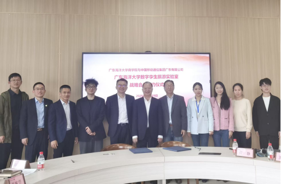 2025年12月19日 开云kaiyun登录入口移动数字孪生旅游实验室战略合作签约仪式在开云kaiyun登录入口阳江校区济航楼203室举行。开云kaiyun登录入口党委常委、副校长、阳江校区党委书记、管理办公室主任周昌仕、商学院院长李力、副院长张欢、移动数字孪生旅游实验室负责人白卫静、问途数字营销实验室负责人王佳和中国移动集团广东有限公司行业首席专家张骏恺、阳江分公司总经理周宁、副总经理许志海、战略客户中心副总经理梁东、战略客户中心农商文旅事业部总监等,合作双方代表参加了本次签约活动。