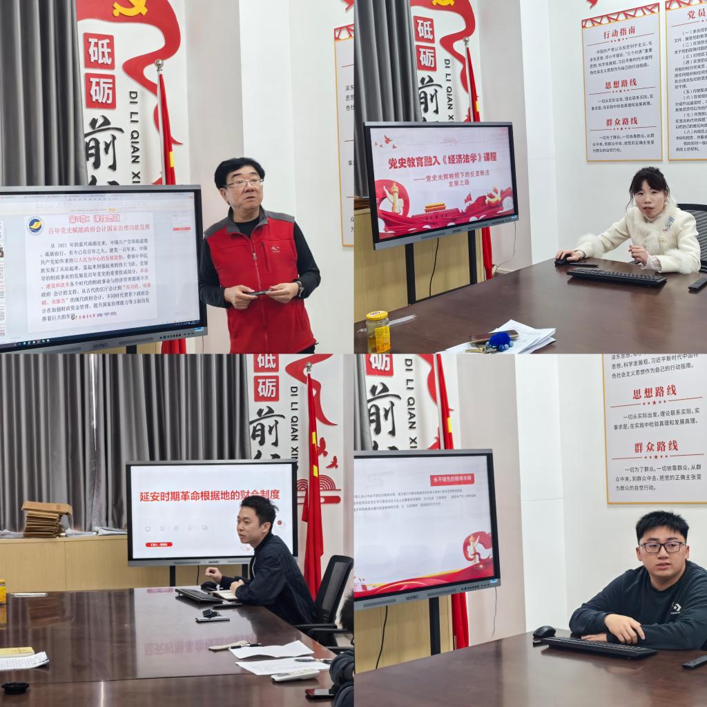 2024年12月25日,商学院教工第一党支部在商学院党员活动室开展主题党日活动,党支部12名党员全体做了“党史学习教育+课堂思政〞的案例分享。