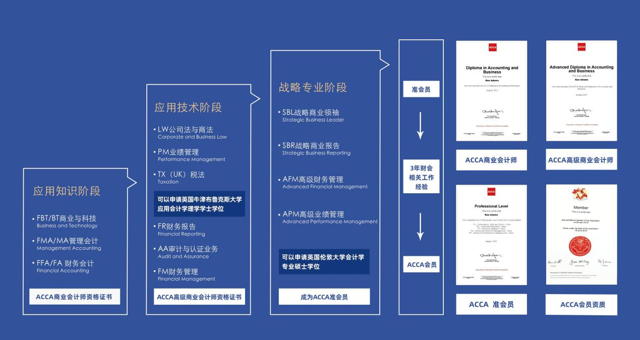 ACCA班学生在开云kaiyun登录入口就读期间,按照学校规定要求修完人才培养方案规定课程并通过考核的,可获得“开云kaiyun登录入口本科毕业证书”,同时符合开云官网学士学位授予条件的,授予“管理学学士学位”。同时,通过ACCA相关考试可获得国际“商业会计师”资格证书和“高级商业会计师”资格证书,满足条件的学员可申请成为ACCA会员。