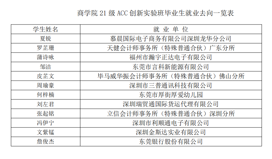 商学院21级ACCA创新实验班毕业生一次就业率达到100%,远超会计学普通专业