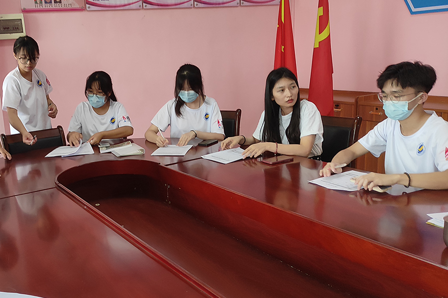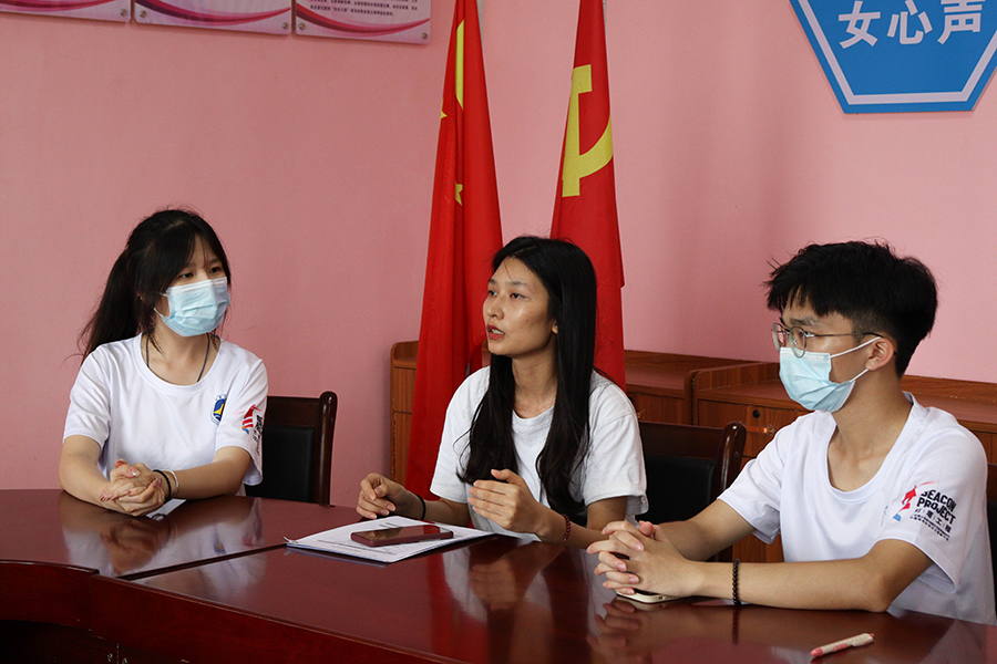 图为实践队成员在采访潭簕村妇女之家的工作人员。伍倩文 供图