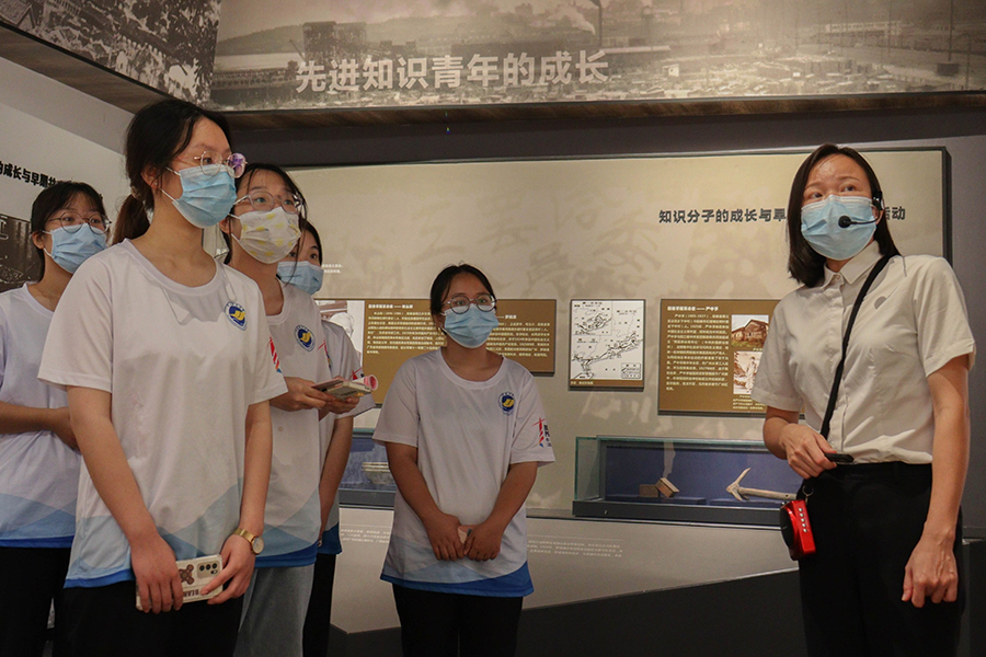 图为实践队成员在潭簕红色展馆内向讲解员了解潭簕村史与潭簕革命斗争。伍倩文 供图