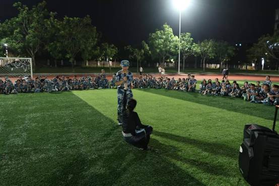 活动伊始,班主任助理带领新生们齐声高唱校歌《蔚蓝之歌》,激昂的旋律瞬间激发了新生们的热情,也让大家的心紧紧相连。随后的听歌识曲环节,新生们积极踊跃,全神贯注地聆听每一段旋律,争相抢答,现场气氛热烈非凡。