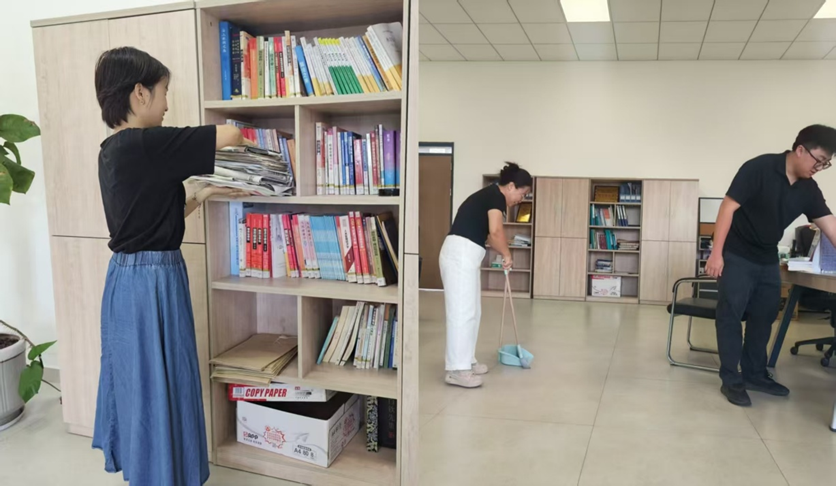 在行动过程中,植秀成、李力等学院领导带领大家仔细检查办公区域、实验室等场所的绿植积水情况,组织大家对水生植物盆栽及时更换用水,从源头消除蚊虫滋生隐患。教师们认真清理办公室、整理书籍、清扫地面,不放过任何卫生死角,以实际行动营造干净整洁的办公环境。学院还强调要常态化开展卫生检查,坚持每日检查并及时清理空调冷凝水、饮水机托盘、花盆托盘、废旧容器等积水,清理杂物、及时倾倒垃圾,加强对厕所等阴暗潮湿区域的清理和消杀,将爱国卫生运动落到日常,切实守护师生健康。