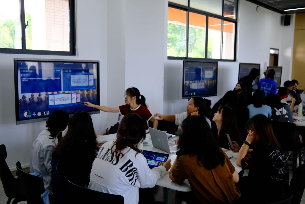 实验室的严肃游戏学习电子仿真沙盘则将真实商业案例搬入课堂,模拟企业数字化营销和运营的问题情境,将解决业务问题的过程进行游戏化处理,突出教育性、趣味性和博弈性,让学生能够在一个接近真实的商业环境中进行学习。