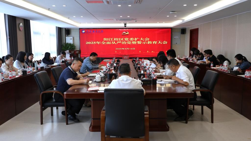 为深入贯彻落实全面从严治党要求,推进深入贯彻中央八项规定精神学习教育走深走实,4月16日上午,阳江校区在海纳楼712会议室召开全面从严治党暨警示教育大会,总结校区2024年全面从严治党工作,部署2025年全面从严治党重点工作任务。受学校党委常委、副校长,阳江校区党委书记、管理办公室主任周昌仕的委托,校区党委副书记丁永成主持会议。校区党委副书记麦冬宁、各职能部门负责人以及机关全体人员参加会议。丁永成传达了二十...