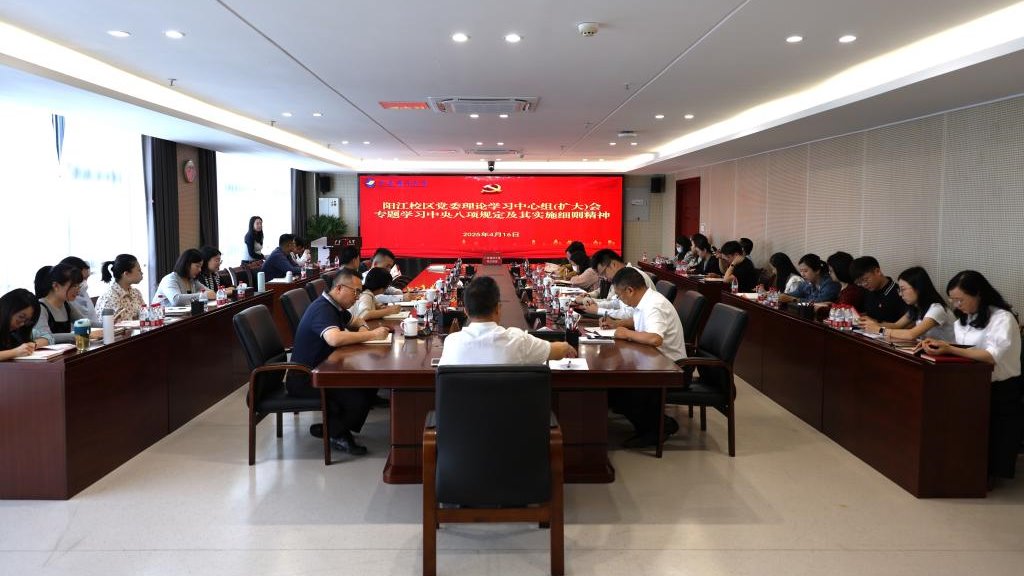 4月16日上午,校区在海纳楼712会议室召开党委理论学习中心组(扩大)会议,专题学习中央八项规定及其实施细则精神。阳江校区党委副书记丁永成、麦冬宁,各职能部门负责人,机关全体人员参加会议。会议由丁永成主持。会上,丁永成领学了习近平新时代中国特色社会主义思想,重点学习《习近平关于加强党的作风建设论述摘编》精神。麦冬宁作中央八项规定及其实施细则专题解读。会议还邀请了阳江市委讲师团成员、学校师德宣讲团成员...
