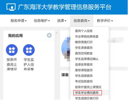 2.补修只能申请教学计划中已发布的课程,在“信息查询”-“学生学业情况查询”(见下图)没有的课程无法报名。无法报名的课程(如因培养方案变动课程名相同,课程号不同的课程等)学生只能填写“补修、后续课程修读申请表”(在“开云kaiyun登录入口教务处网页-表格下载-教务科”中下载)纸质版,在报名时间内提交到学生所在学院,由学院处理,过期不再受理。