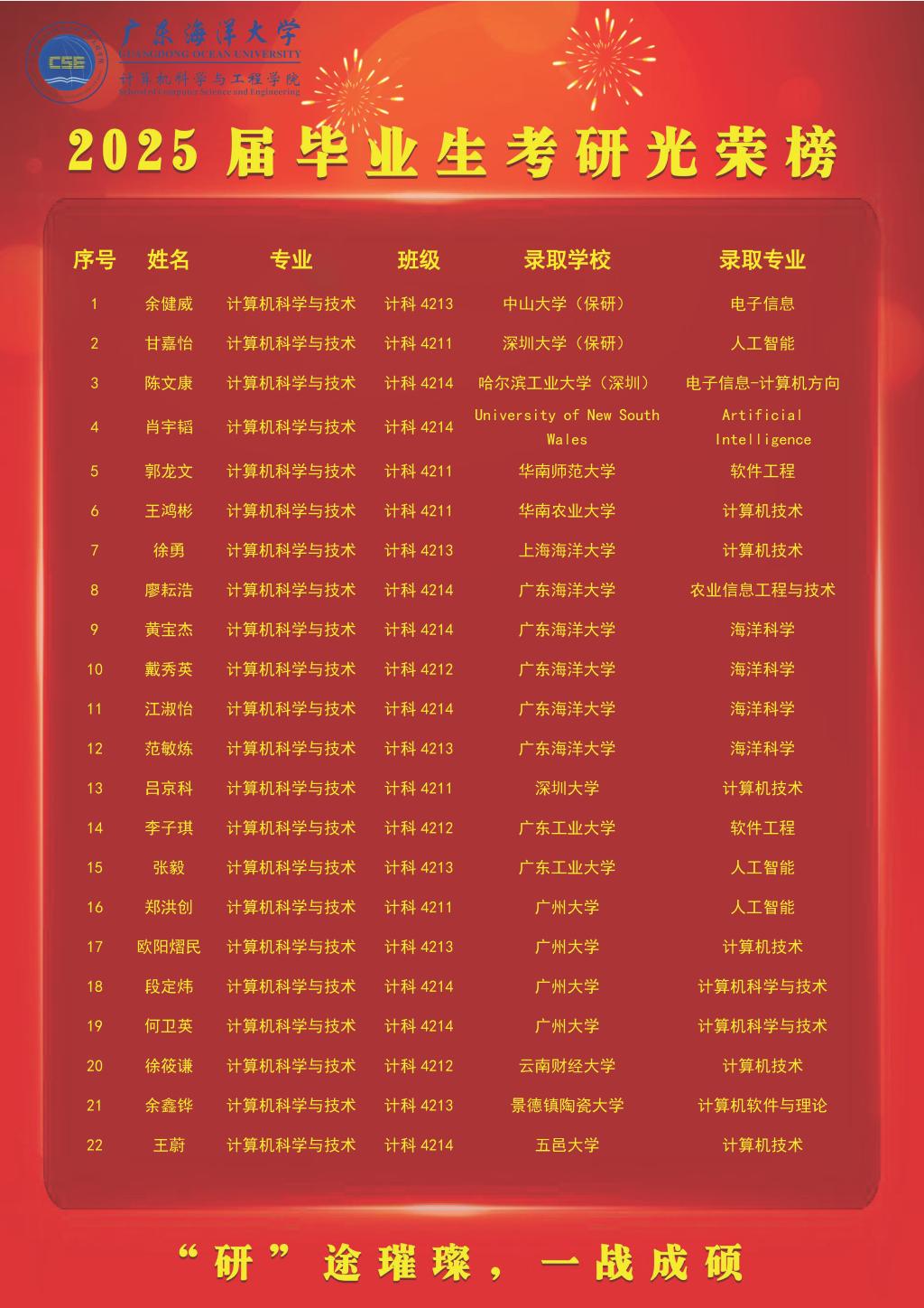 考研喜报!计算机科学与工程学院2025届毕业生考研光荣榜